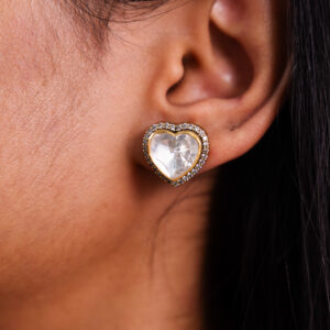 Like a whispered promise, these heart-shaped studs feature a luminous mozonite gently outlined by a fine shimmer of Swarovski crystals, creating an ethereal sparkle.