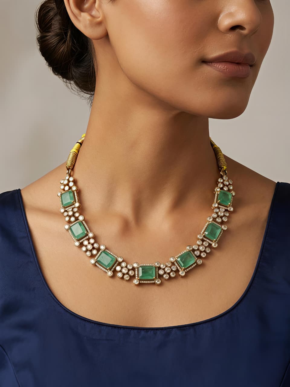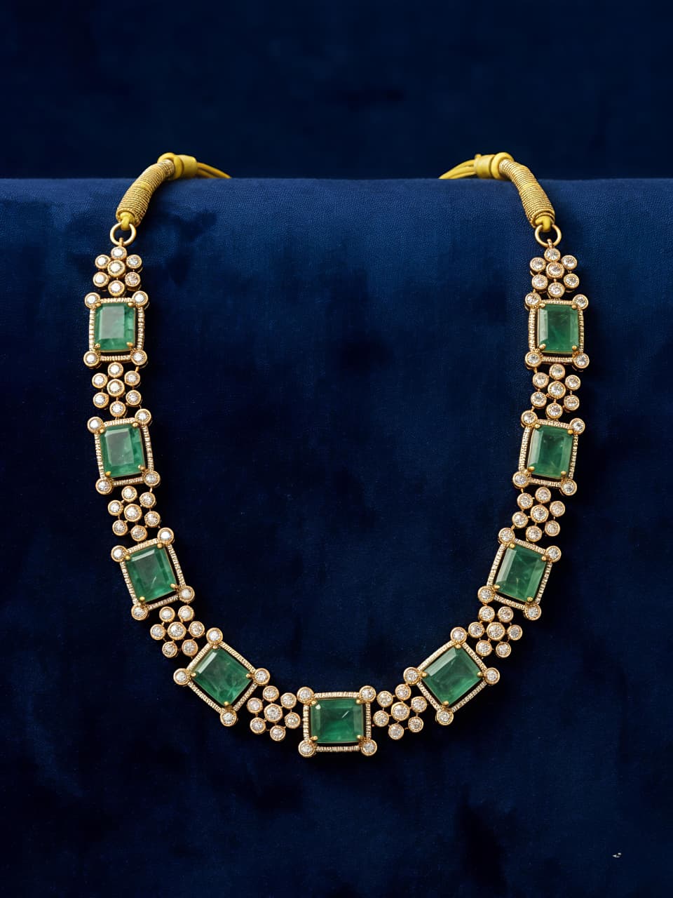 Be the first to review “Elegant Silver Necklace with Moissanite, CZ & Green Colour Stones”