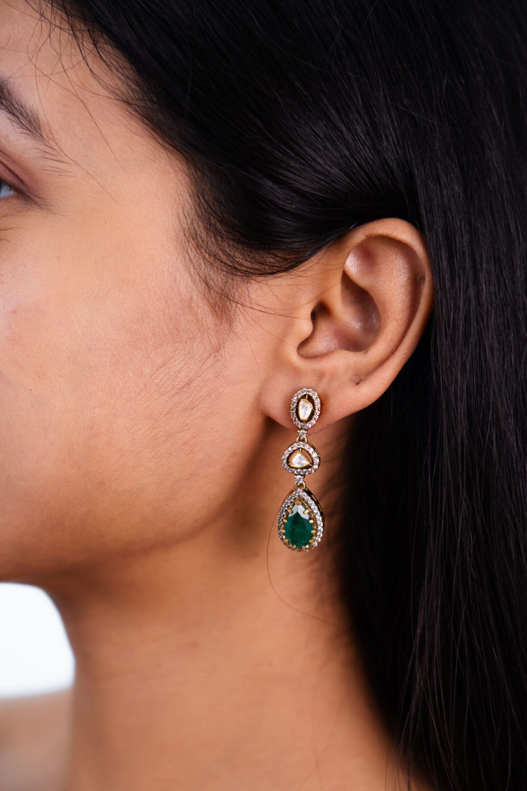 Be the first to review “Emerald & Trio Mozonite Drop Earrings”