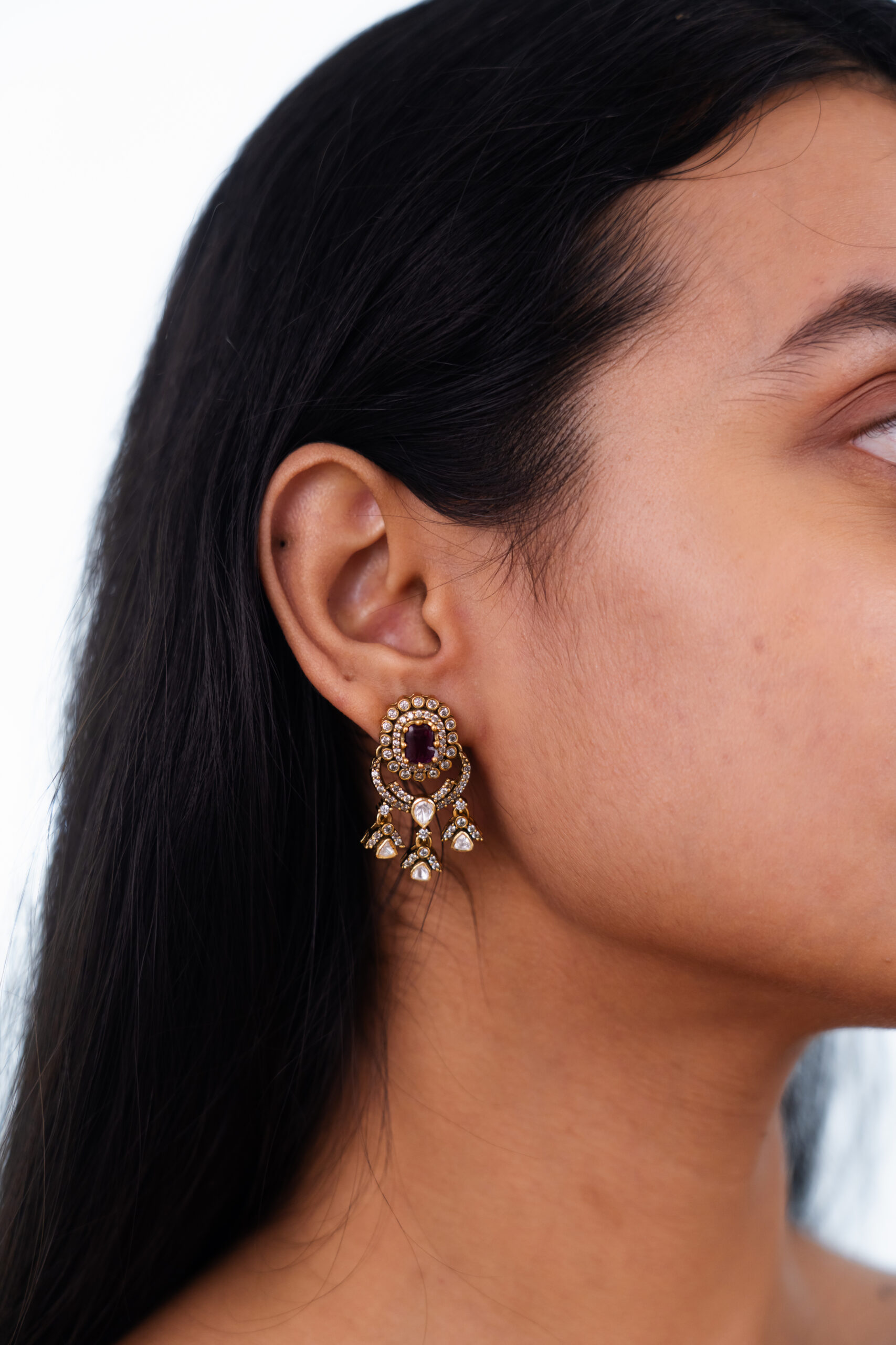 Royal Ruby and Polki Diamond Chandbali Earrings
