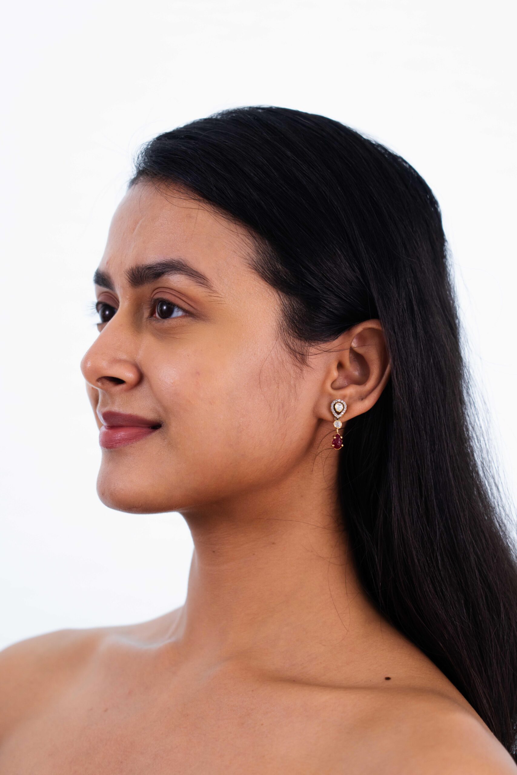 Ruby & Mozonite Linear Drop Earrings