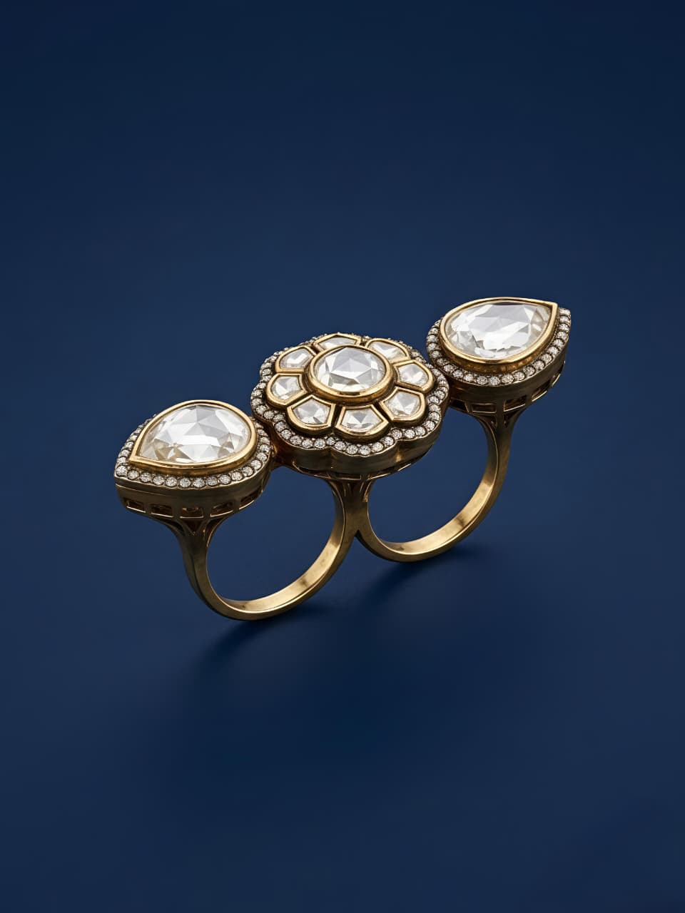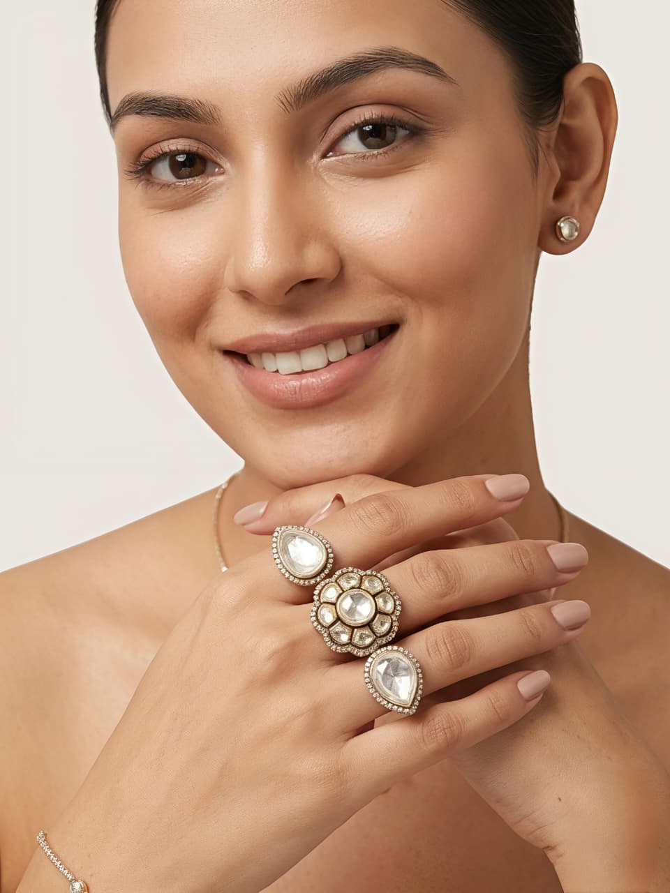 Elegant silver ring featuring a unique three-stone design with pear and round shapes, adorned with sparkling moissanite and CZ for a refined and timeless look.